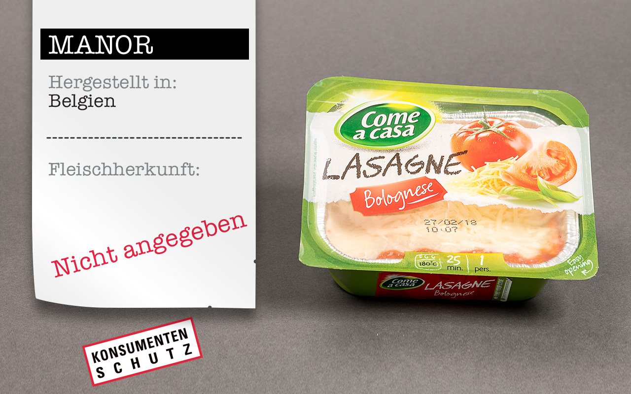 Manor lässt seine Fertiglasagne in Belgien herstellen. Aber woher stammt das enthaltene Fleisch? Brasilien? China? Wir werden es nicht erfahren, Manor will den Konsumenteninnen und Konsumenten diese Information vorenthalten. Wehren Sie sich jetzt dagegen und unterzeichnen Sie die Petition der Allianz der Konsumentenschutz-Organisationen für bessere Herkunftsdeklaration.