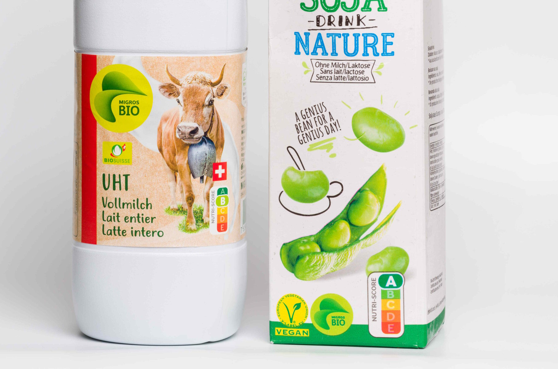 Vollmilch wird in Zukunft nicht mehr das hellgrüne B, sondern das gelbe C tragen, auch der Soja-Drink wird nicht mehr einen A-Score tragen: Nur Wasser wird in Zukunft noch mit A bewertet.