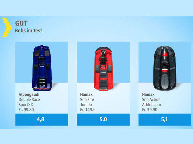 Drei Bobs haben die jungen Tester überzeugt: Alpengaudi Double Race und die beiden Hamax-Bobs im Test sind bei keinem Kriterium durchgefallen und bekommen das Gesamturteil «gut». Besonders erfreulich ist, dass der Testsieger Hamax Sno Action nur 60 Franken kostet und in vielen Läden erhältlich ist (die detaillierten Testresultate finden Sie hier).