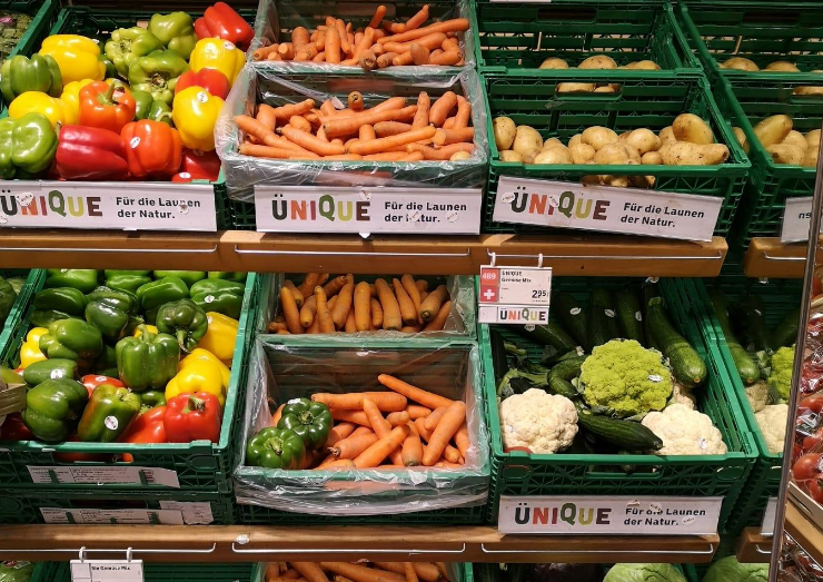 Inzwischen sucht man wieder oft vergebens nach Gemüse und Früchten, die etwas aus dem Rahmen fallen. Stichproben in verschiedenen Orten und verschiedenen Detailhändlern zeigen: In kleineren und mittleren Läden von Coop und Migros sowie bei anderen Anbietern (Denner, Aldi, Lidl) ist das Angebot gleich null, einzig in grossen Filialen findet man vereinzelt Produkte. Auch in den Online-Shops ist das Angebot quasi inexistent. In der Migros ist es ohnehin schwierig, diese Produkte zu erkennen: Im Gegensatz zu Coop, welche diese unter der Marke «Ünique» anbieten, hat Migros dafür keine eigene Linie.