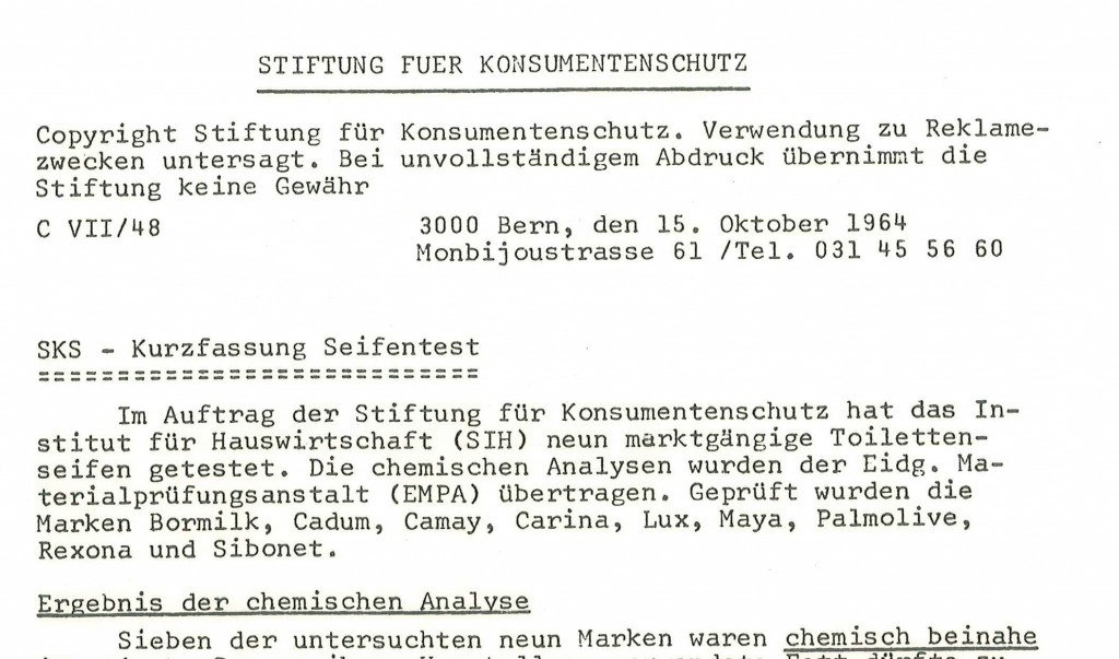 Der erste im Oktober 1964 veröffentlichte Test der SKS, der „Seifentest“, fand medial und bei den Konsument:innen sehr grosse Beachtung: